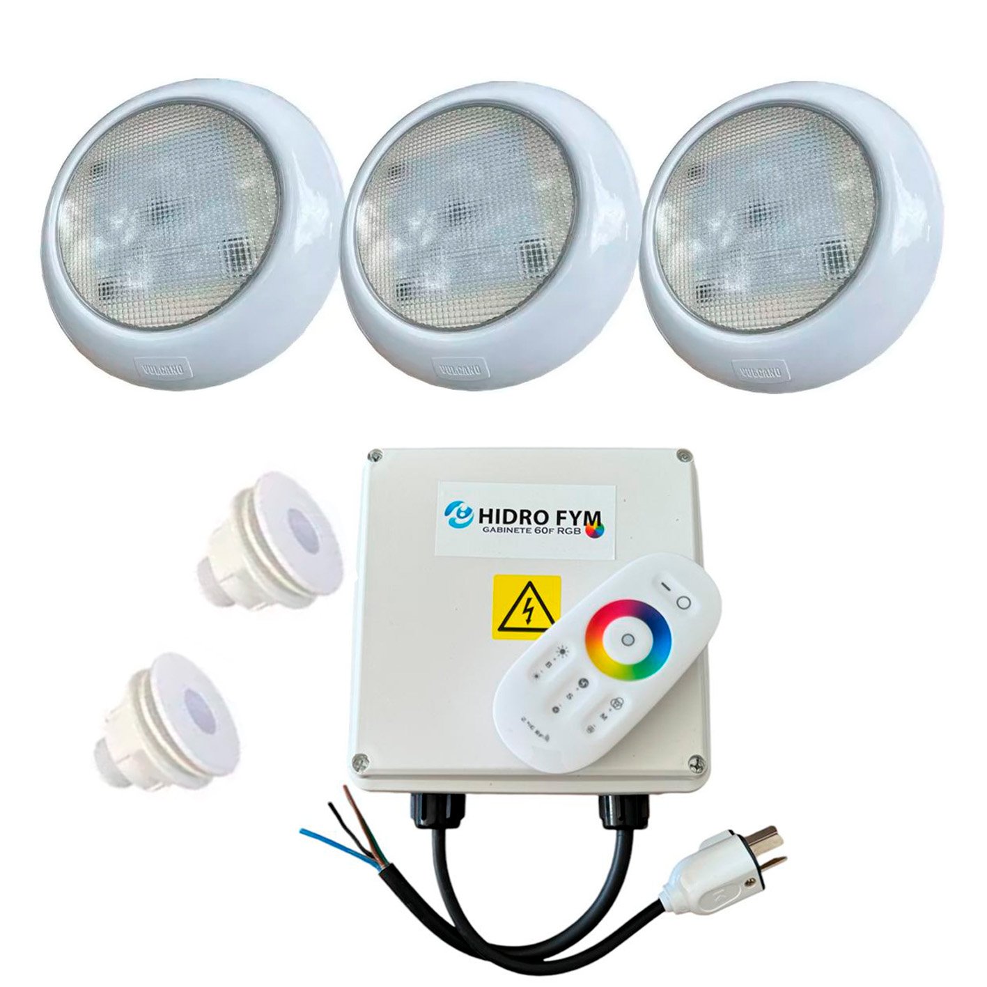 Kit 3 luces vulcano superled 14,4w RGB hormigon/fibra + Gabinete HidroFym