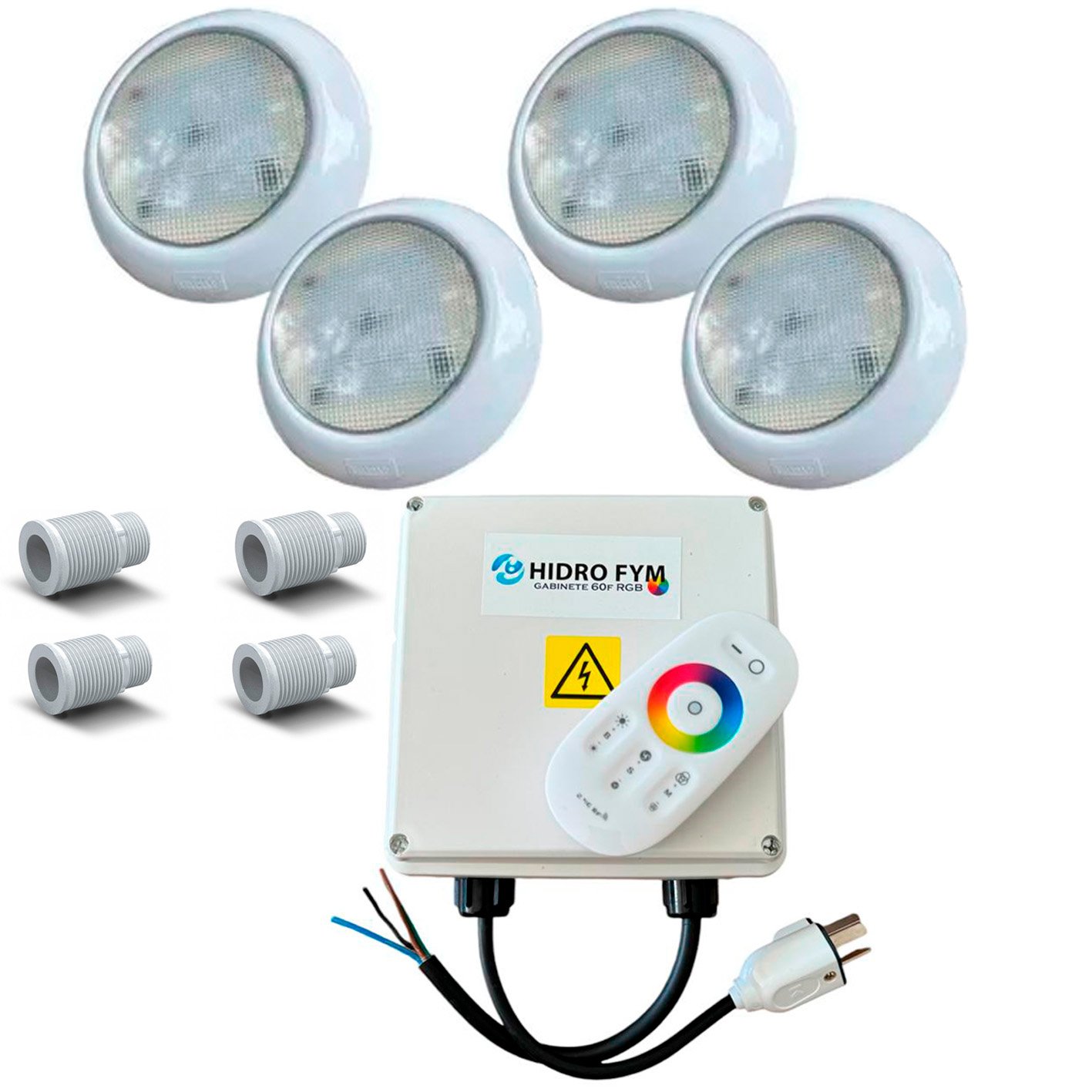 Kit 4 luces vulcano superled RGB 14,4w RGB hormigon/fibra + gabinete HidroFym